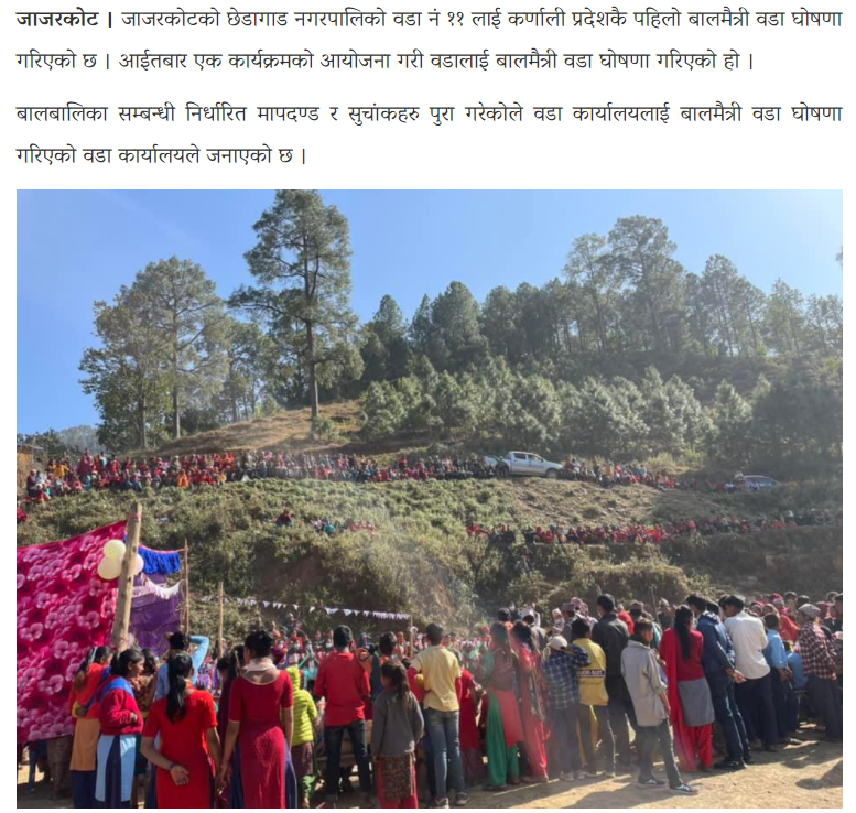 कर्णालि प्रदेशको पहिलो बालमैत्रि वडा घोषणा